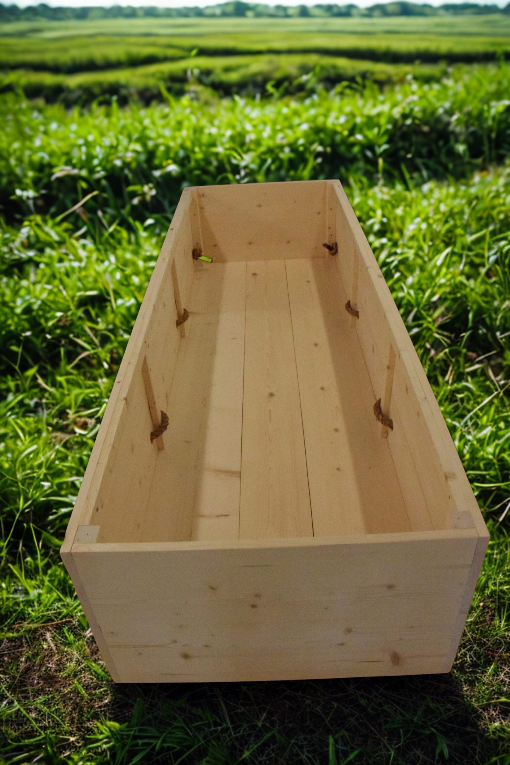 Our caskets are constructed using high-quality, unfinished pine wood, ensuring both durability and a natural appearance.